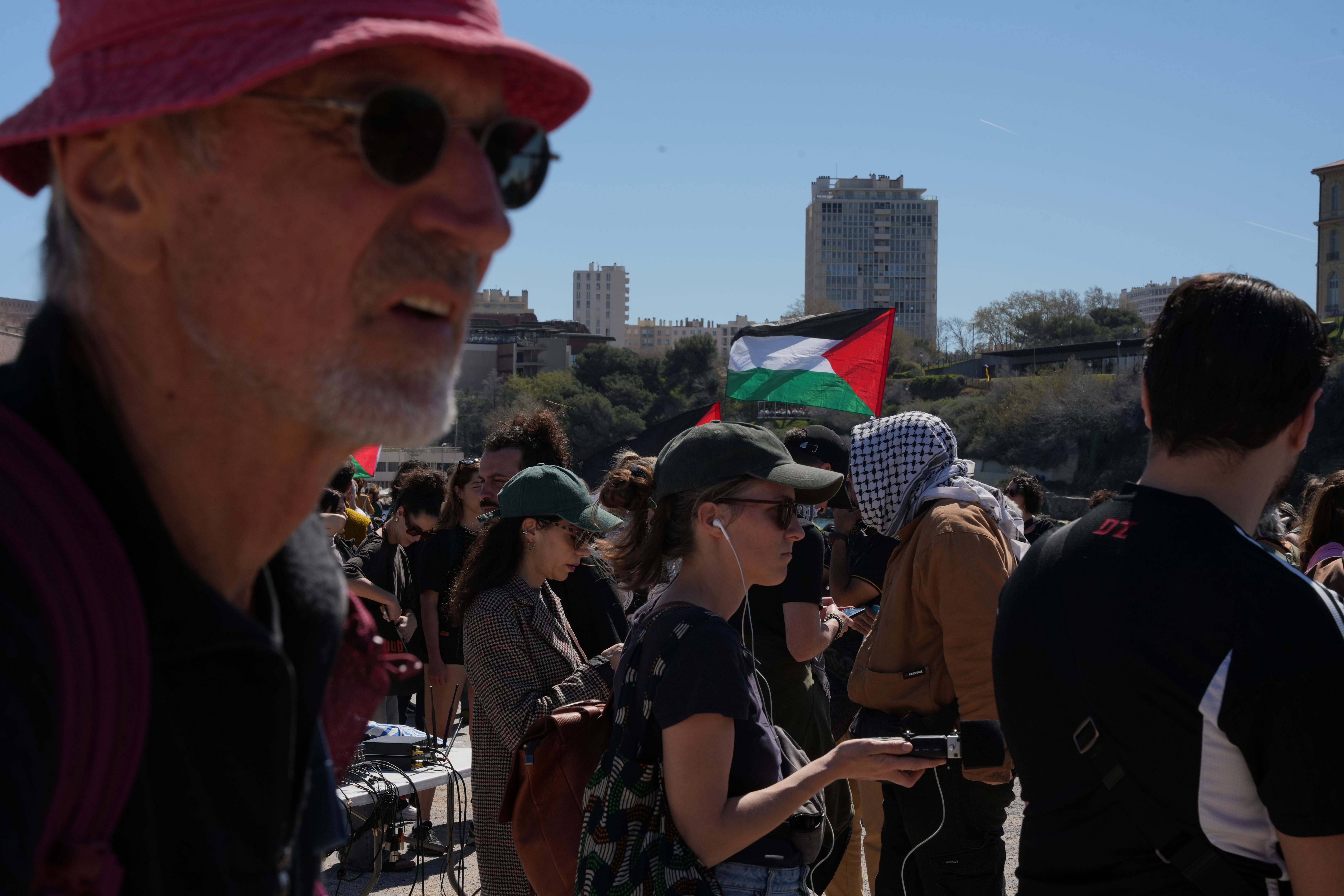 Limanın kıyısında gerçekleştirilen basın açıklamasında konuşan Barış için Yahudi Fransız Birliği (UJFP) Sözcüsü Pierre Stambul, sert ve net ifadeler kullandı. Stambul, İsrail’in mevcut yapısını eleştirerek, "İsrail, soykırımcı bir sömürge devletidir. Bu basit bir siyasi görüş değil; belgelerle sabit, tartışılmaz bir tarihi gerçektir. 1948’den bu yana Filistinlilerin kasıtlı olarak topraklarından sürülmesi, bugün kimsenin göz ardı edemeyeceği bir hakikattir" dedi.