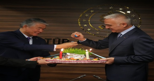 Baharın gelişini, doğanın uyanışını ve kardeşliğin simgesi olan Nevruz Bayramı, Ankara’da Türk dünyasının temsilcilerinin katılımıyla coşkuyla kutlandı. Kültür ve Turizm Bakanı Mehmet Nuri Ersoy, 21 Mart Nevruz Günü vesilesiyle Uluslararası Türk Kültürü Teşkilatı (TÜRKSOY) Genel Sekreteri Sultan Raev ve Türk Cumhuriyetlerinden gelen kalabalık heyeti makamında kabul etti. Ortak kültürel mirasın altının çizildiği kabulde, Türk dünyasının sarsılmaz bağları bir kez daha tescillendi.