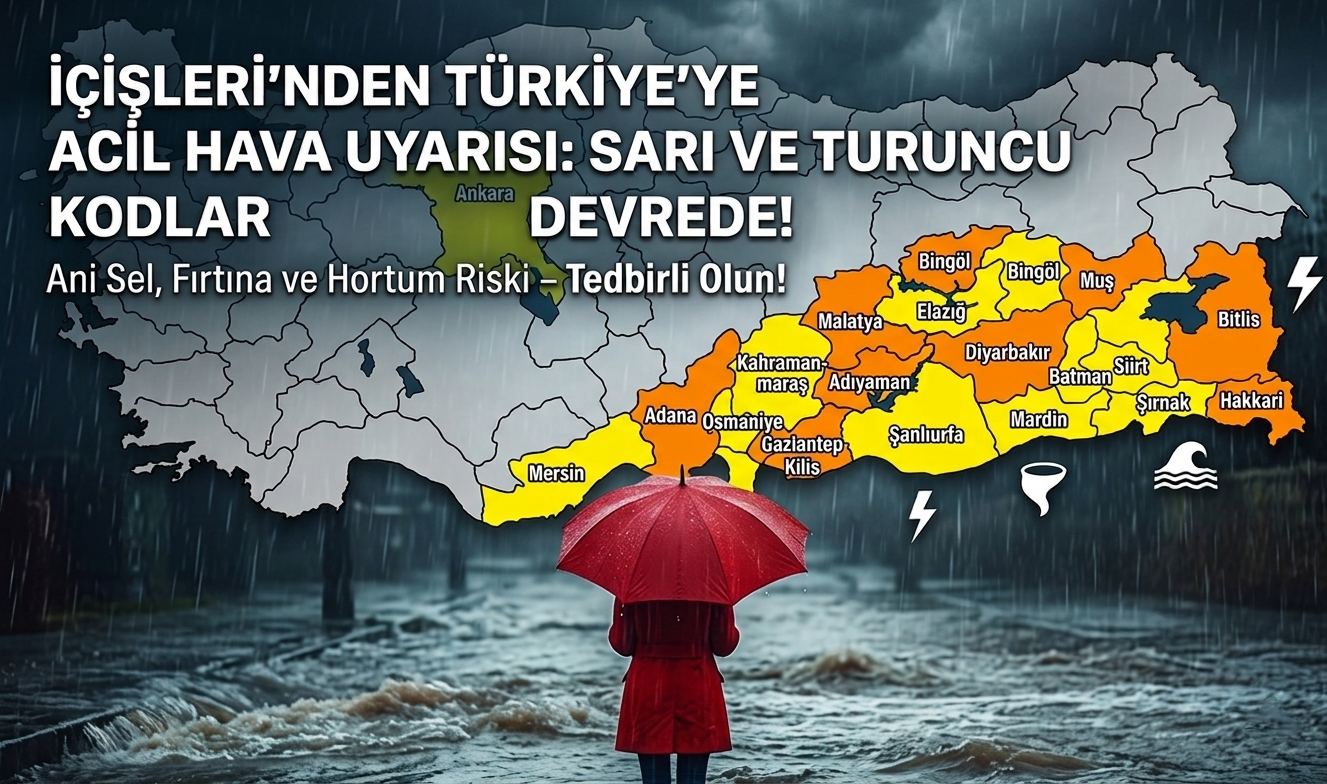 İçişleri Bakanlığı, meteorolojik veriler doğrultusunda Türkiye genelinde birçok il için sarı ve turuncu kodlu alarm verdi. Vatandaşların ani sel ve fırtına gibi olumsuzluklara karşı dikkatli olması istendi.